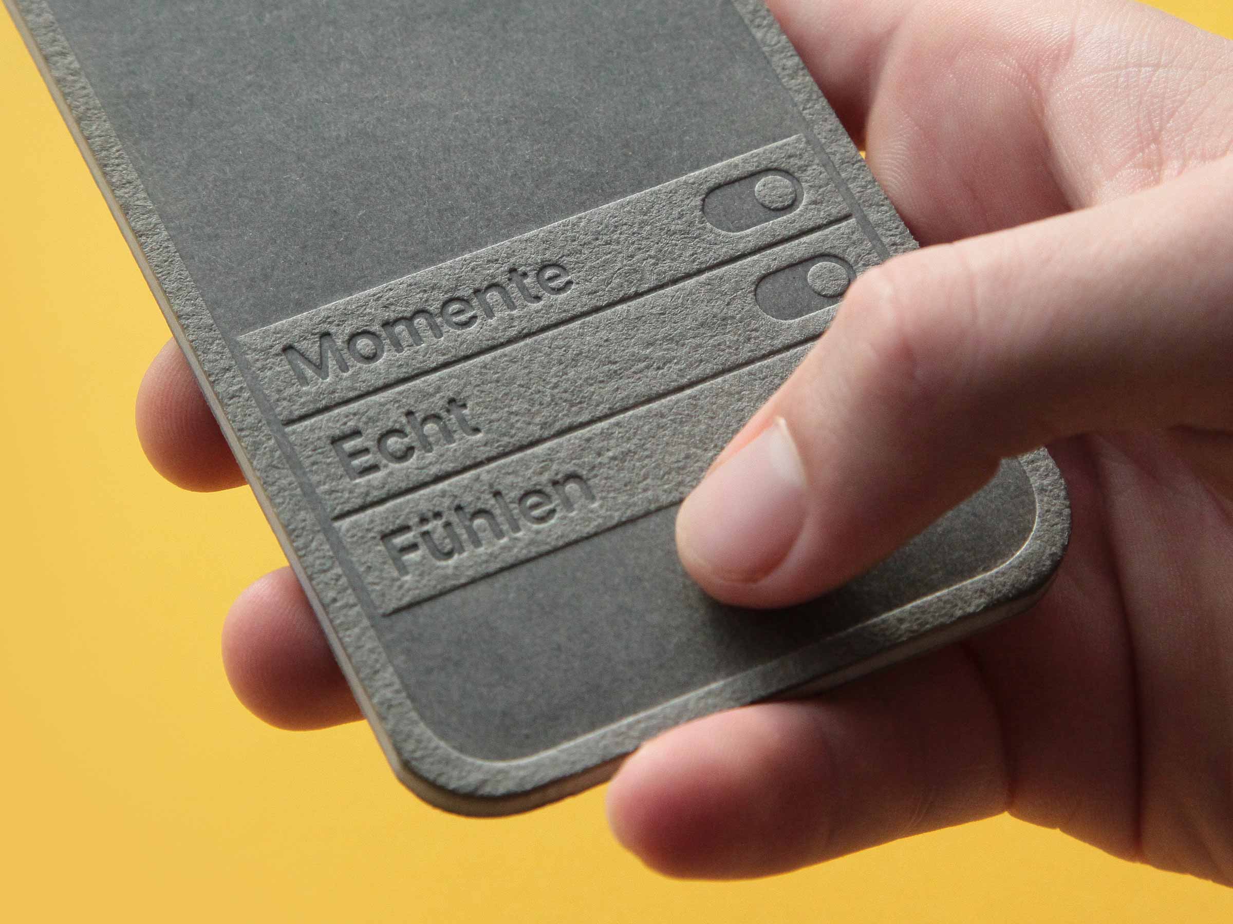 Berühren und berührt werden – das menschlichste Urbedürfnis trägt jeder in sich. Haptische Kommunikation vermittelt die Botschaft direkt und eindeutig durch gezielten Einsatz des Tastsinns im Gestaltungskonzept. Botschaft, Idee und Material als begreifbare Einheit durchdacht.